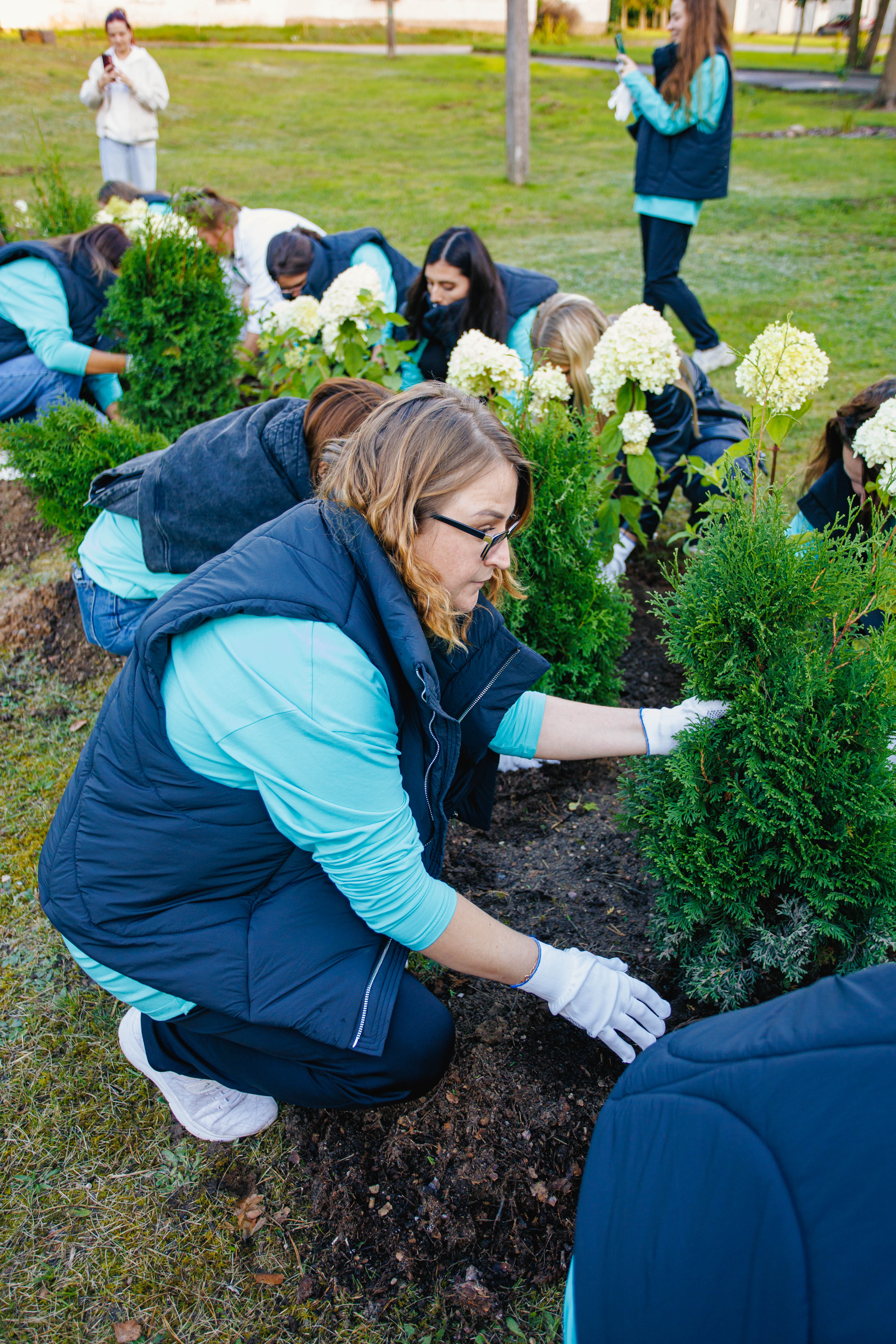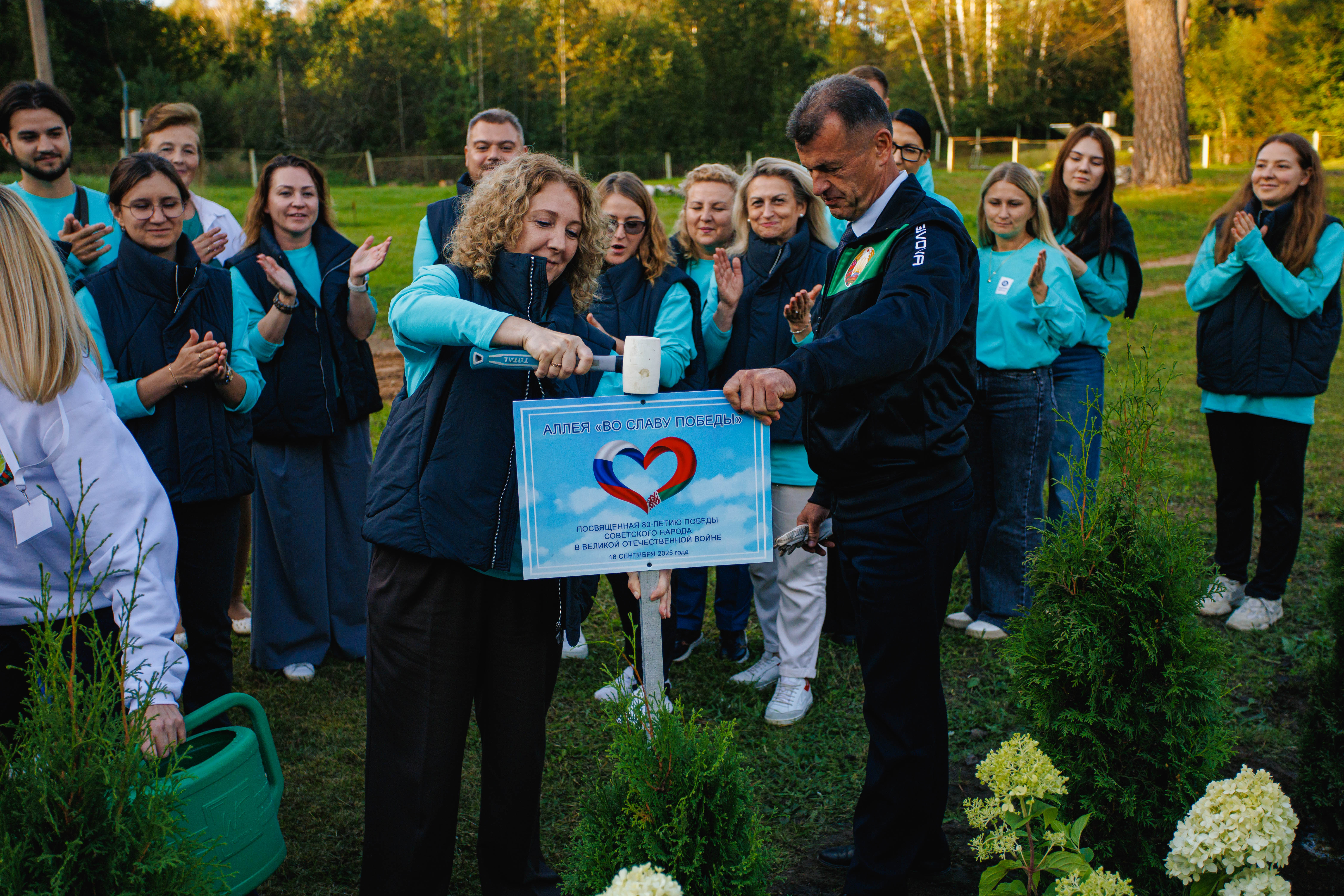 – Мы неслучайно выбрали это место для такого знакового события. Именно здесь проживала последний ветеран Великой Отечественной войны нашем районе. В знак уважения ко всем ветеранам островецкой земли, а также на память о вашем визите мы и решили посадить аллею. Ведь мы с вами братский народ, который свято чтит историческую память и никогда не забудет героизм предков в те страшные годы. А ещё, посадив здесь дерево, вы оставите кусочек себя – и просто обязаны будете навестить Островетчину ещё раз, – с улыбкой отметила Светлана Кутько. потом волонтёры дружно принялись за дело. Несколько минут – и туи с гортензиями ровными рядочками украсили территорию. Тут же появилась и памятная табличка, которую символично вместе установили председатель районного Совета депутатов Геннадий Бычко и руководитель управления правового сопровождения АО «Росатом Энергосбыт» Оксана Пронина. Таким образом, знакомство волонтёров двух союзных стран только укрепилось и, возможно, в перспективе превратится в дружбу. Ведь у них – единство мыслей и действий.
